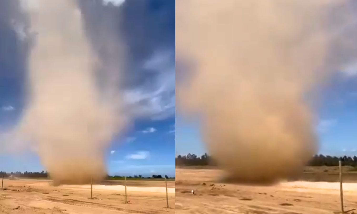 "Se registraron al menos tres torbellinos en el territorio nacional": Captan un gran remolino de tierra en Linares