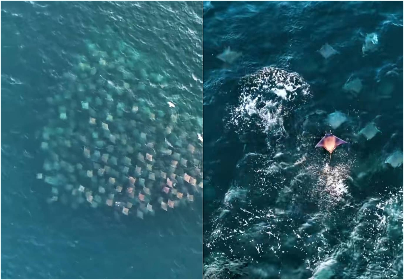 Espectáculo en el océano Pacífico: Biólogo marino capta con dron el masivo salto de mantarrayas en costas de México