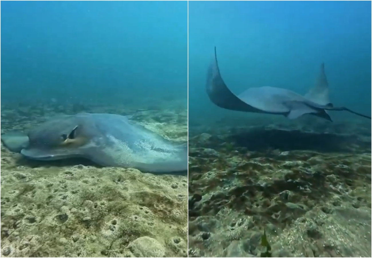 "La raya águila puede alcanzar hasta tres metros de envergadura y vivir más de 25 años. Es un animal cartilaginoso que se desplaza moviendo sus aletas como alas bajo el agua", explica sobre el registro.