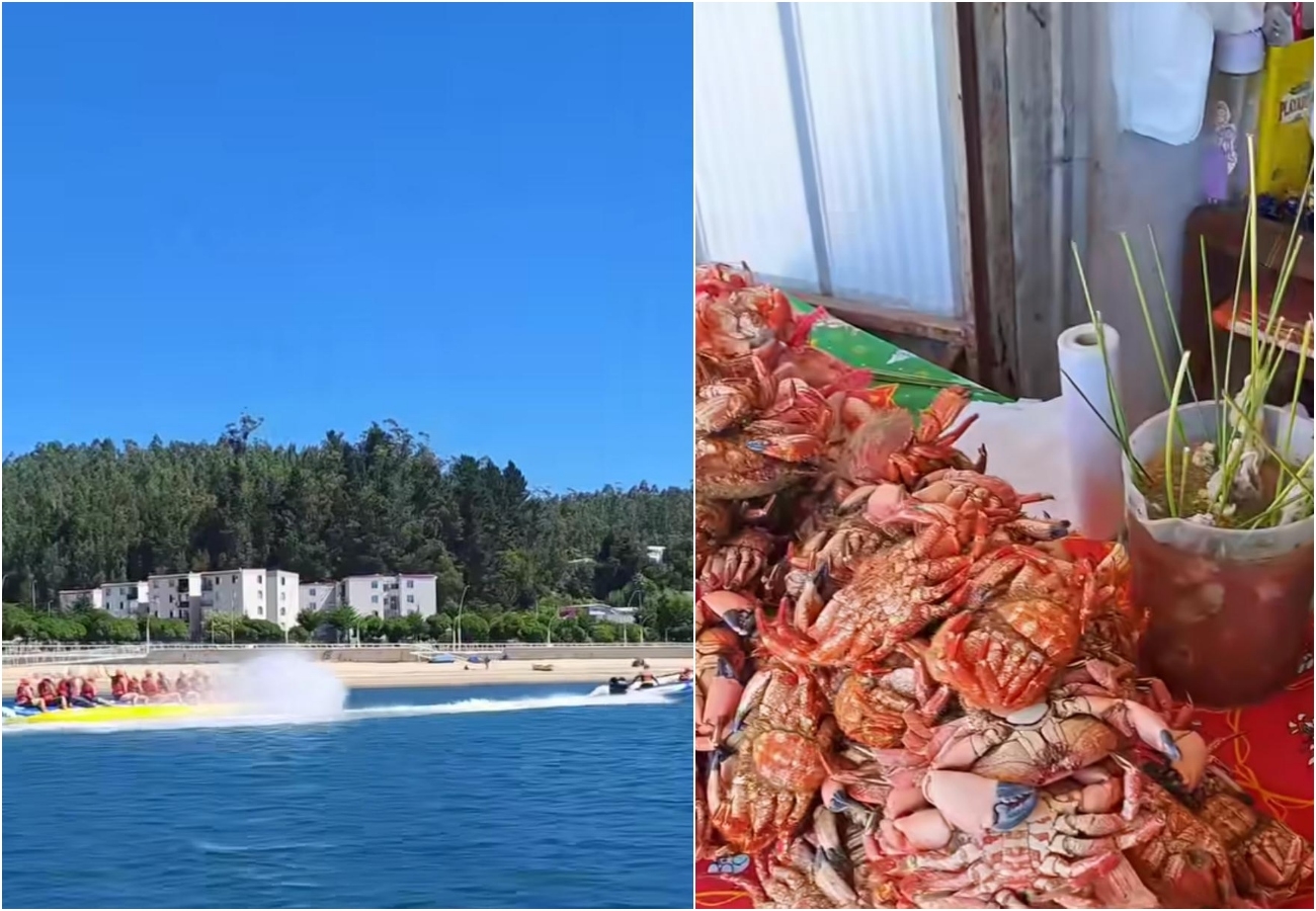 "Qué manera de disfrutar en las caletas de Chile, lo bien que se come ahí", resalta el creador de contenido en su publicación. "Buena comida, buenas playas y buena gente", agregó.
