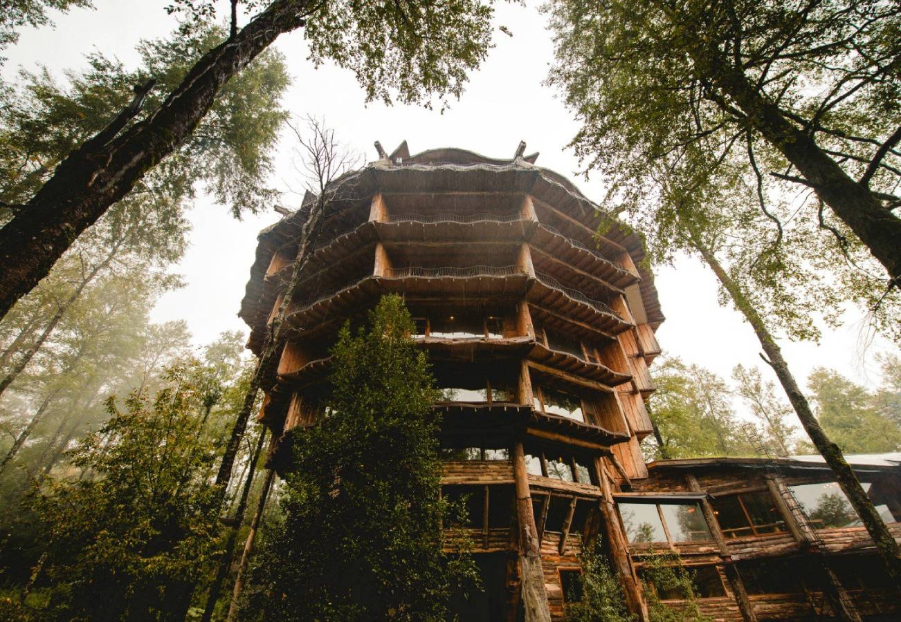 En lo profundo de la Reserva Biológica Huilo Huilo, donde se lucha por la conservación de especies nativas de la región de Los Ríos, se encuentra lo que se considera “el hotel más raro del mundo”.