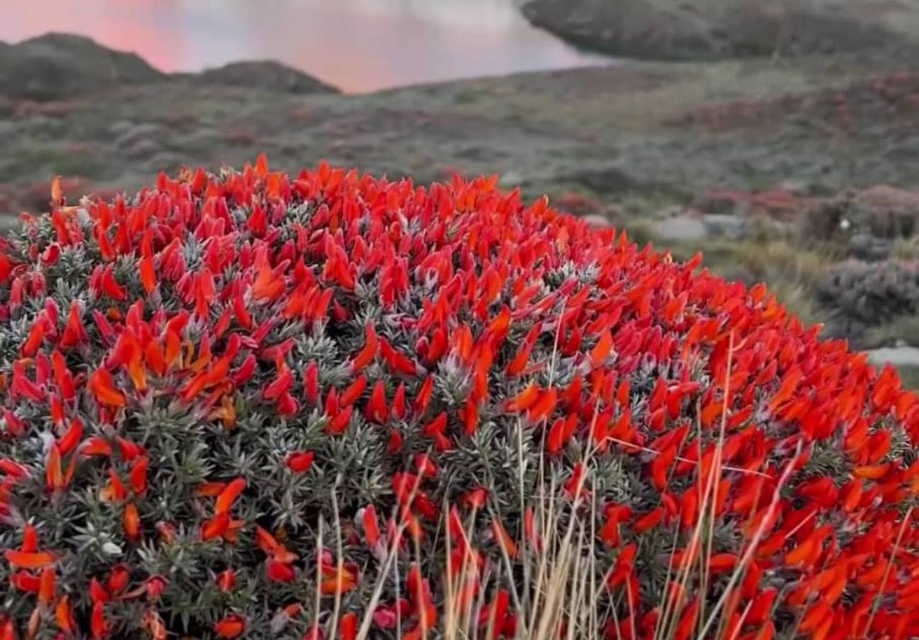 Mata guanaco o neneo macho: Este arbusto florece cada primavera y cubre de rojo a la Patagonia chilena