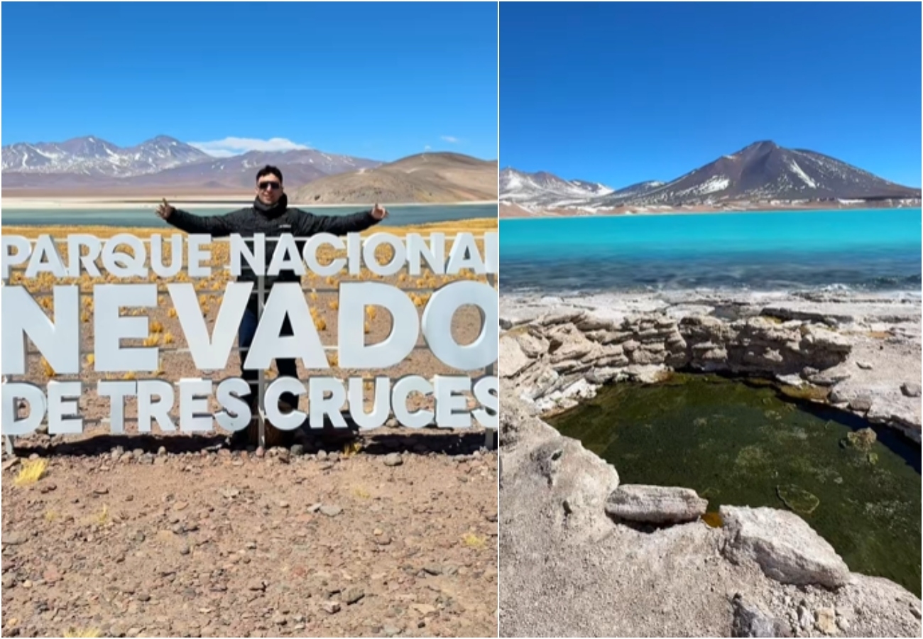 El primer día comienza con una visita el Parque Nacional de Tres Cruces para recorrer sus pasarelas y ver flamingos, comunes en la zona. En su video de TikTok, Howard señala que pasó la noche en el refugio El Volcán, ubicado "al lado de la Laguna Negro Francisco, a unos 4.100 metros de altura".