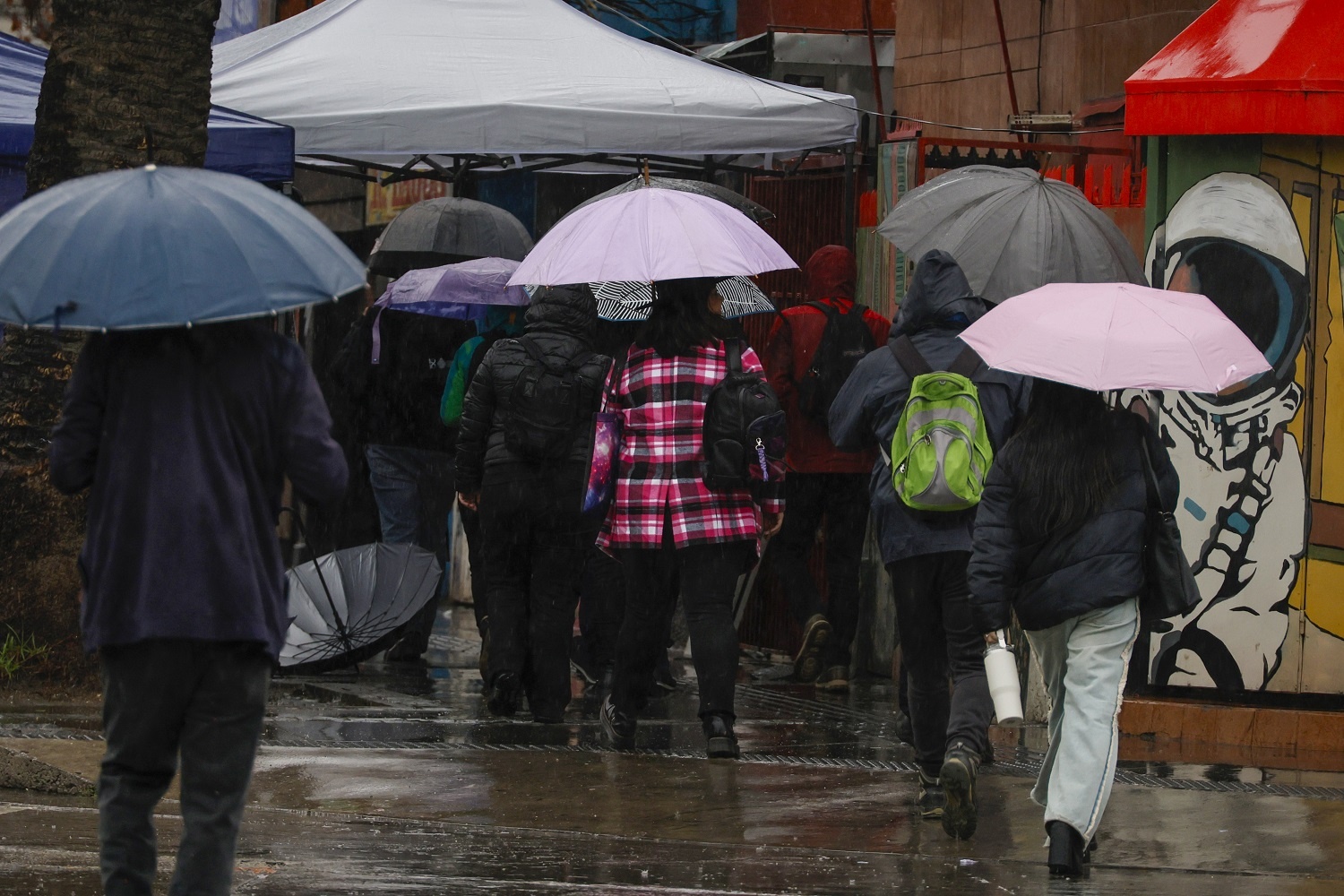 “Este fenómeno meteorológico provocó daños en una feria, ubicada en el sector Alerce Sur”, detallaron en el reporte donde se ven toldos elevados por el viento.