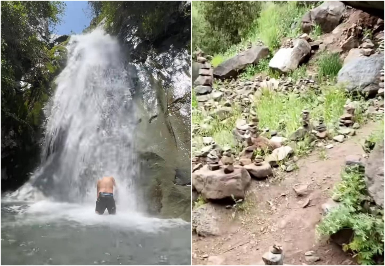 A lo largo del camino se encontrarán pozones ideales para refrescarse antes de llegar a una cascada poco conocida por los santiaguinos. El creador de contenido resalta que "el agua es helada, pero muy fresca para esta temporada de verano".