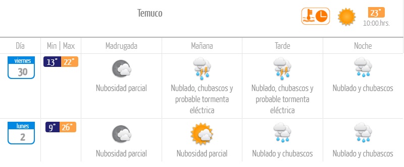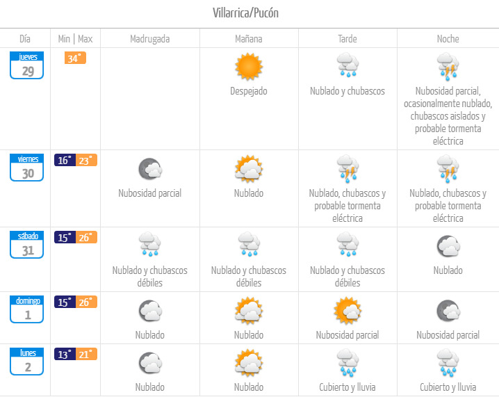 Según el organismo, comenzará a llover desde la tarde de este jueves 29 de enero en las ciudades de Villarrica y Pucón, donde además está presente la probabilidad de tormentas eléctricas.