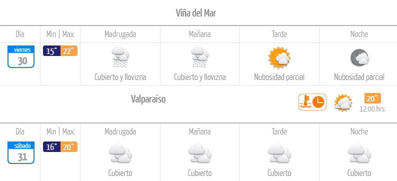 Pronóstico del viernes en Valparaíso
