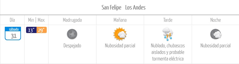 El pronóstico oficial anticipa que, durante la tarde del sábado, San Felipe y Los Andes tendrán chubascos de tendencia aislada.