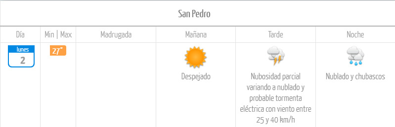 El fenómeno provocará probables tormentas eléctricas y precipitaciones aisladas, “preferentemente durante la tarde noche”.