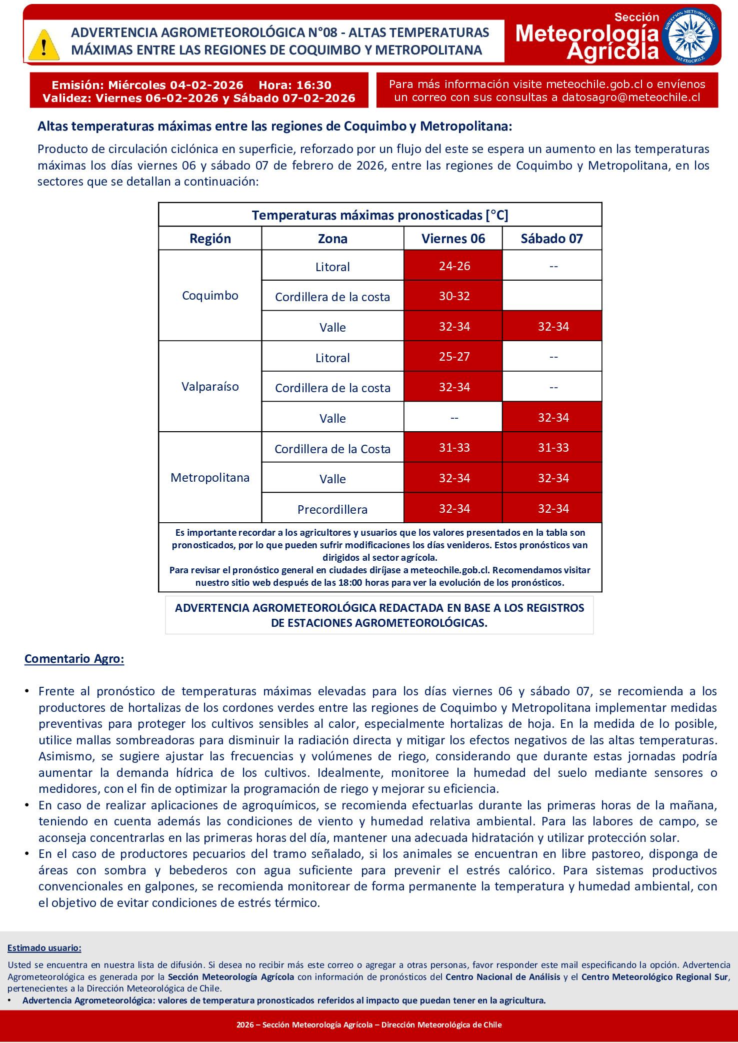 El organismo emitió una advertencia agrometeorológica durante las tardes de este viernes 6 y sábado 7 de febrero.