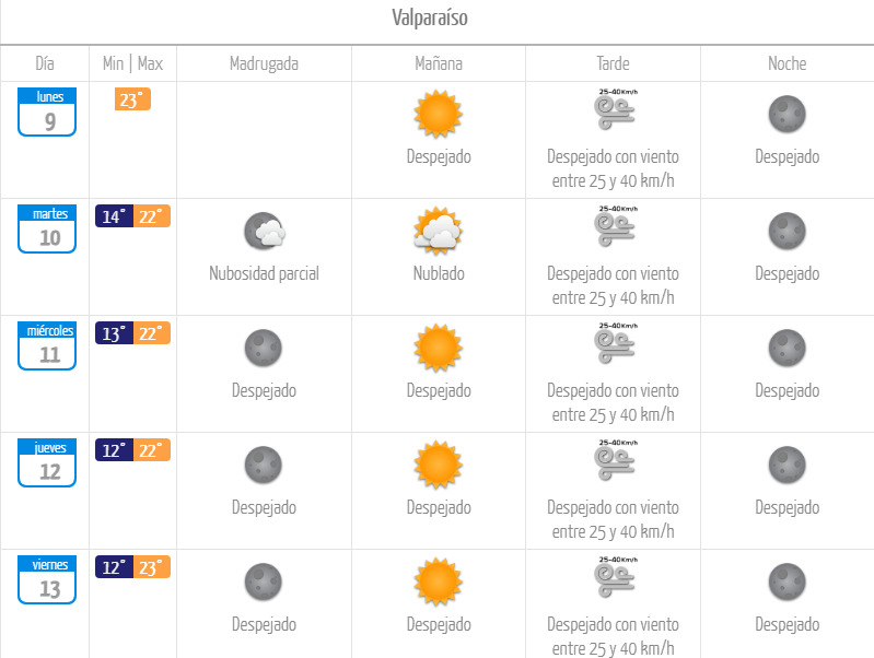 ¿Cuál es el pronóstico en Valparaíso?