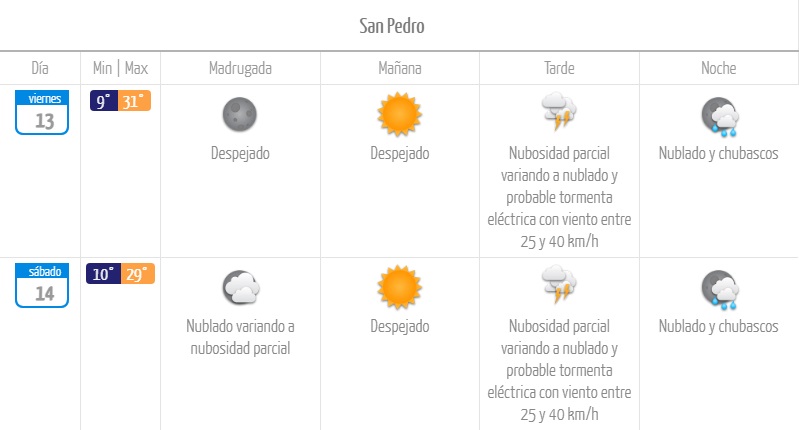 Para el resto de la región se descartan las lluvias y tormentas eléctricas. En cambio, los cielos variarán entre nublados y despejados.