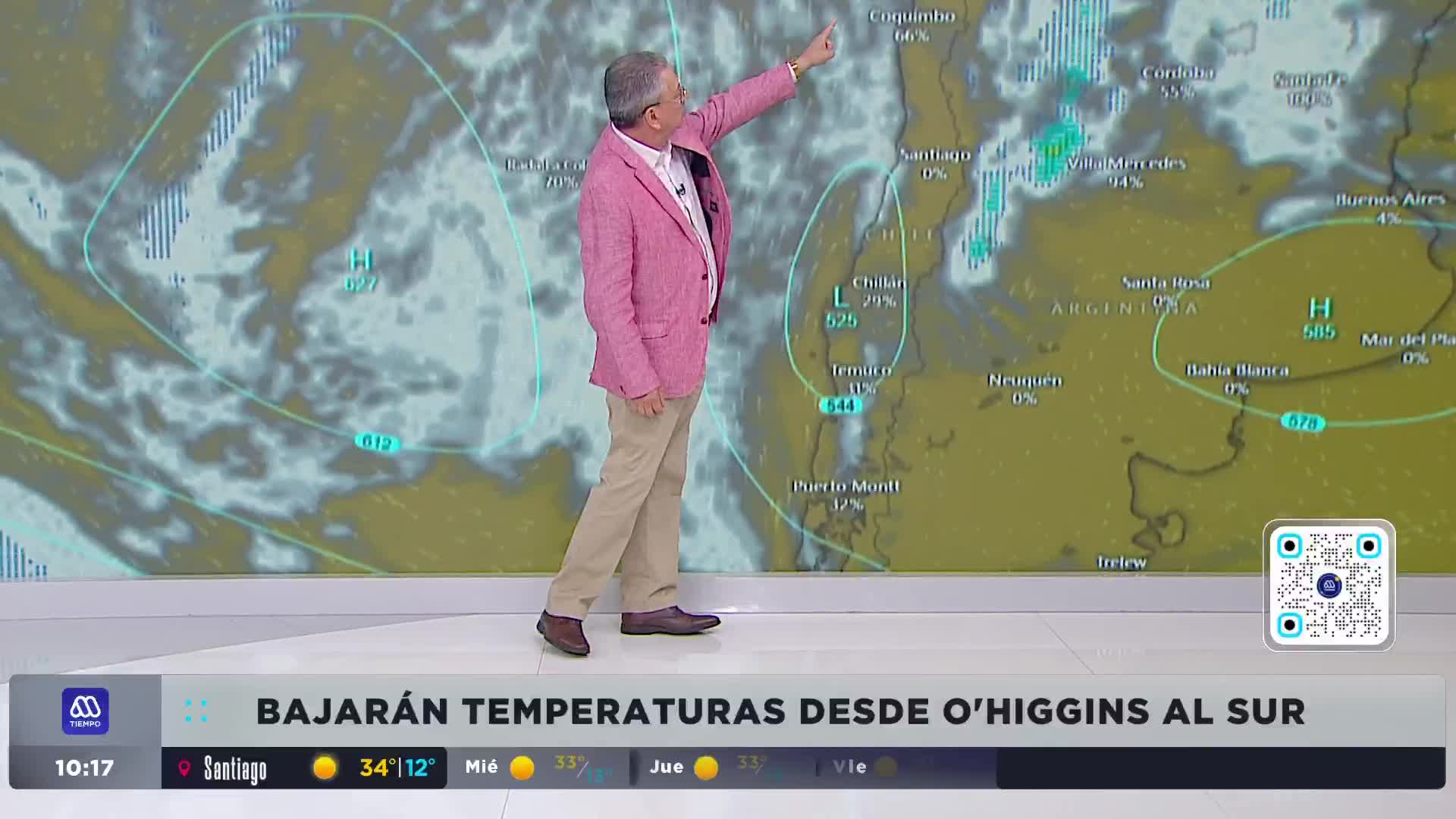 - Precordillera: 33°C, 32°C y 33°C.