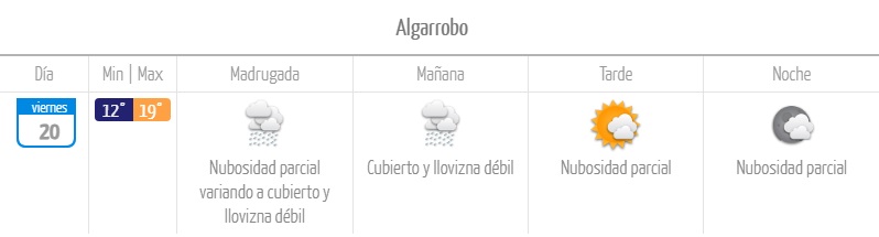 - Papudo, Zapallar, Algarrobo, San Antonio y Cartagena: 12°C y 19°C