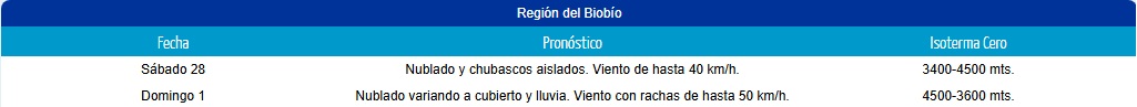 Por su parte, Meteorología detalló que en la cordillera de la región del Biobío las condiciones serán inestabales, también con precipitaciones y corrientes de aire.