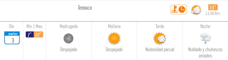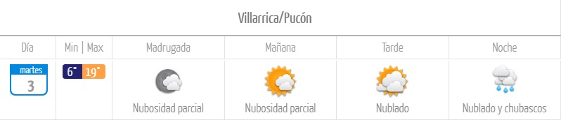 Pronóstico del martes en Temuco y Pucón