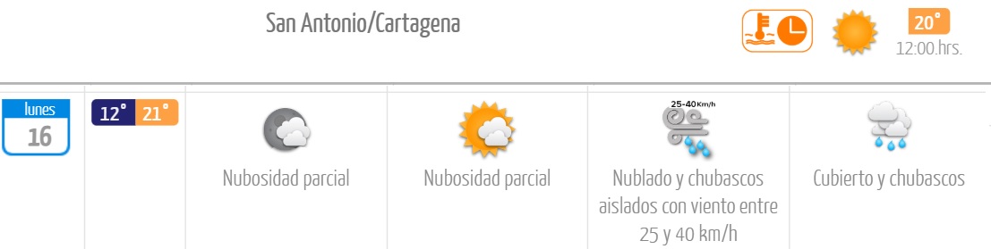 En las comunas de Algarrobo, San Antonio, Cartagena y San Antonio Interior registrarán chubascos desde la tarde y hasta la noche.