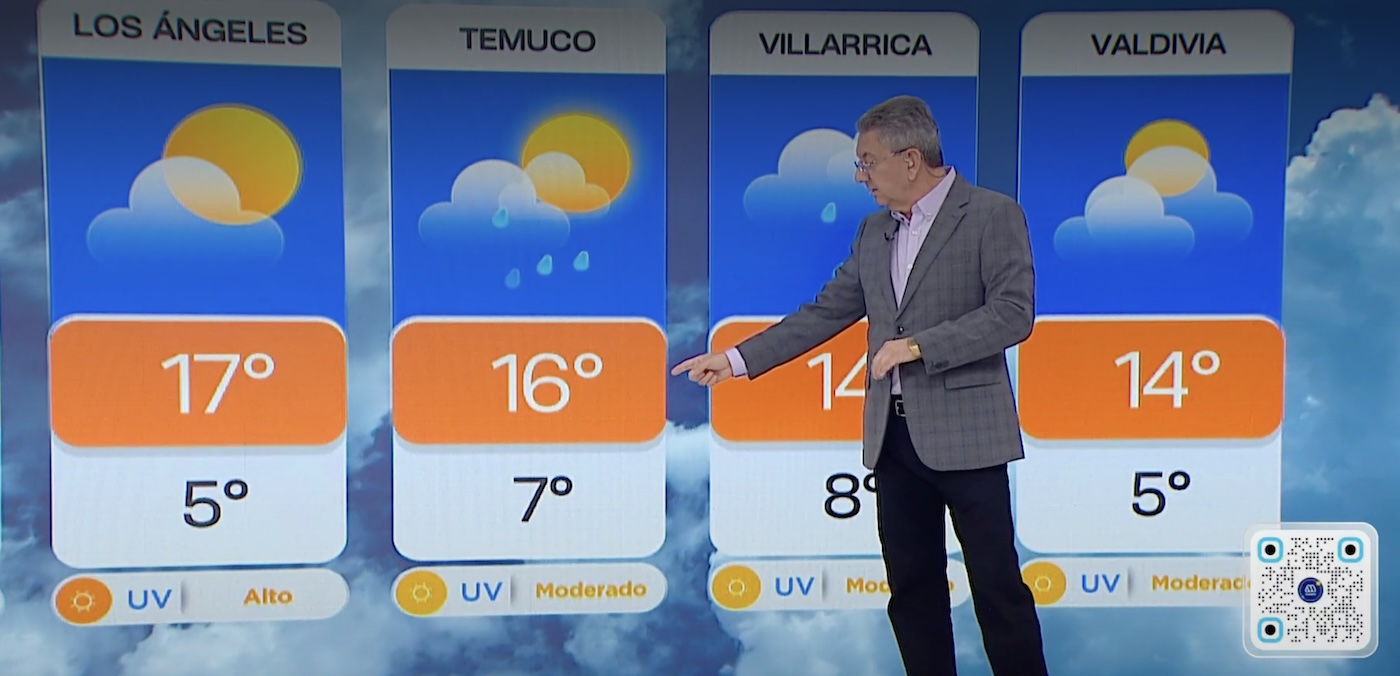 Temuco, Villarrica, Pucón y Puerto Saavedra registrarán lluvia hasta alrededor del mediodía, con viento de entre 25 y 40 km/h en esta última comuna. La actividad continuará hasta la tarde en Angol.