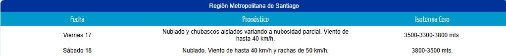 Pronóstico de lluvia en la Región Metropolitana