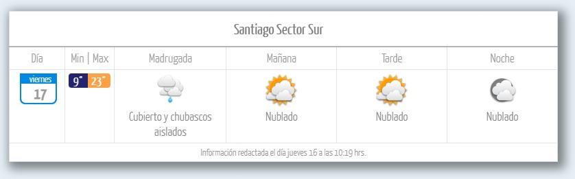 En la región de O’Higgins, solo la comuna de Pichilemu tendrá chubascos aislados la madrugada del viernes. Luego, la comuna permanecerá con cielos cubiertos el resto de la jornada.
