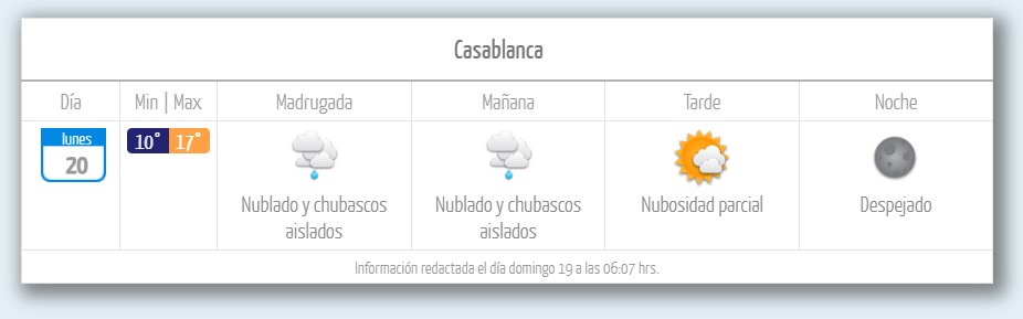 La DMC indica que comunas como Casablanca, Algarrobo, San Antonio y Cartagena registrarán precipitaciones aisladas en un horario similar.