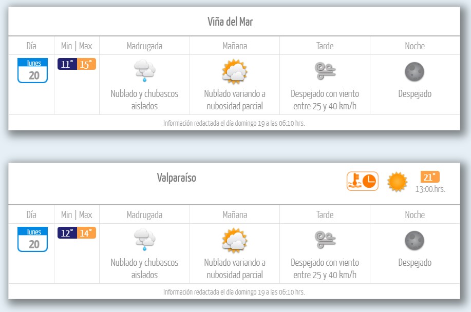 Tanto en Valparaíso como Viña del Mar estará nublado y habrá chubascos aislados en horas de la madrugada, variando a nubosidad parcial por la mañana, según la DMC.