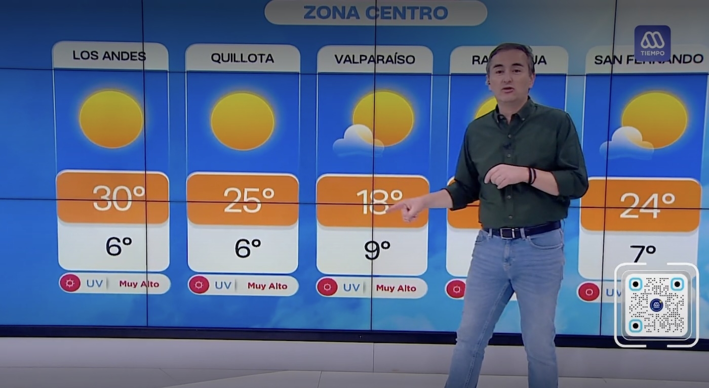 En el norte y centro se prevén “nubes bajas y neblina matinal, con máximas frescas de 18°C a 20°C. Los valles interiores estarán despejados y calurosos, entre 26°C y 30°C, afectando a la Región Metropolitana. De O’Higgins a Ñuble habrá entre 18°C y 26°C, con mañanas nubladas”.