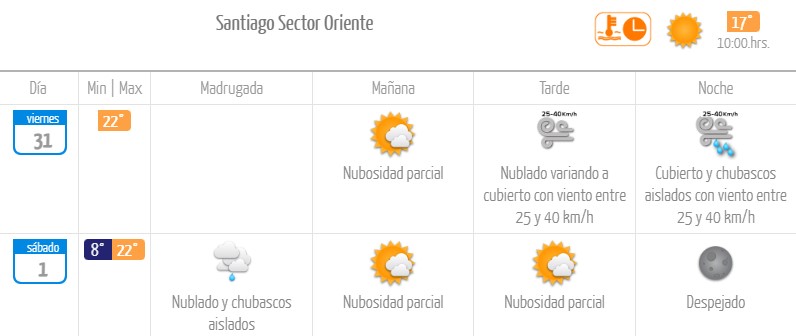 En el sector oriente de Santiago caerán chubascos aisladoshasta la madrugada del sábado.