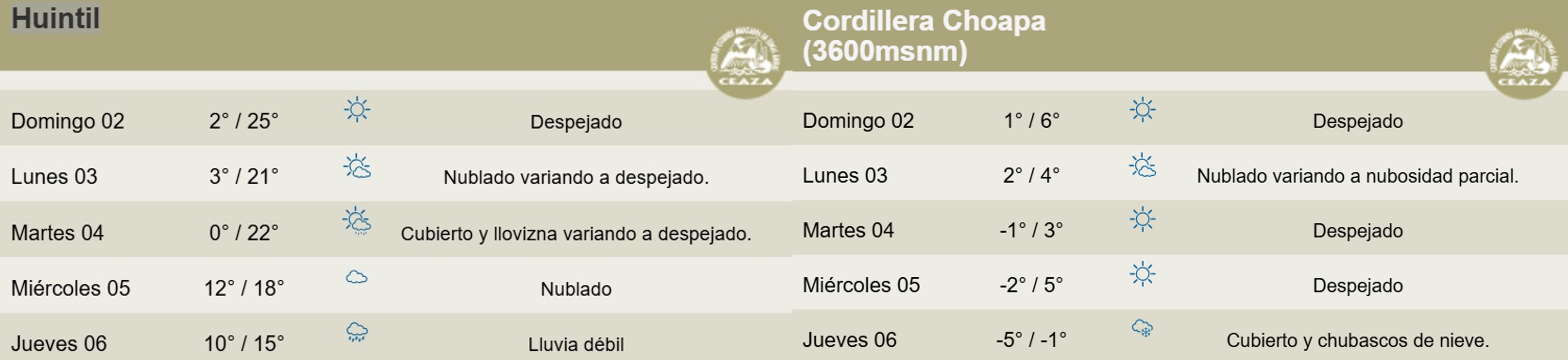 El pronóstico del Centro de Estudios Avanzados en Zonas Áridas (Ceaza) prevé chubascos e incluso lluvia en sectores de las provincias de Elqui, Limarí y Choapa el próximo jueves 6 de noviembre.