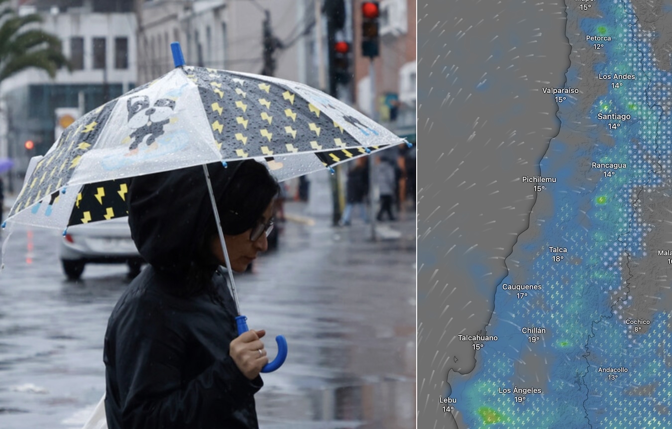 "Hacia las 8:00 de la tarde, la lluvia y las condiciones húmedas se toman toda la parte desde la cordillera de la costa, valle y también cordillera de los Andes, sobre todo en la zona centro del país y, sobre todo, en Santiago”, agregó.