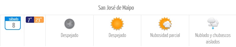 - Santiago sector sur: 7°C y 23°C.