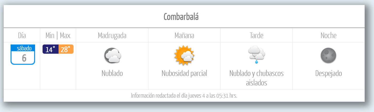 De esa nubosidad se desprenderán chubascos aislados hacia horas de la tarde en la ciudad de Combarbalá.
