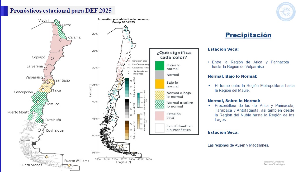 Sepúlveda destacó que “por primera vez en muchos años la DMC estima que al menos en el centro-sur del país podríamos tener precipitaciones sobre lo normal entre las regiones de Ñuble y Los Lagos”.