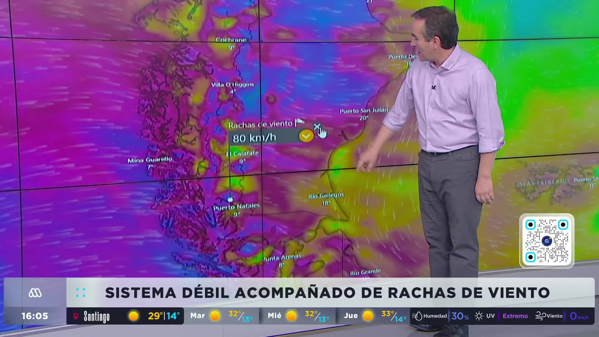El pronóstico de la Dirección Meteorológica de Chile (DMC) anticipa que este miércoles 24 de diciembre, jornada de víspera de Navidad, avanzará con lluvias y viento en sectores de tres regiones.