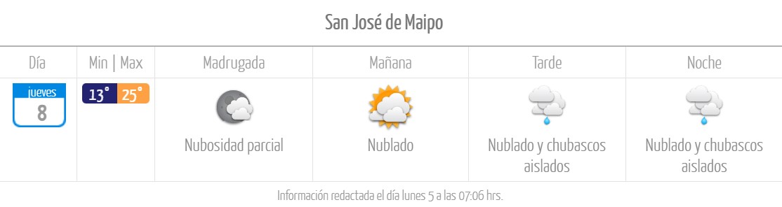 De acuerdo con el pronóstico oficial de la DMC, el núcleo frío en altura derivará en chubascos aislados en la comuna de San José de Maipo.